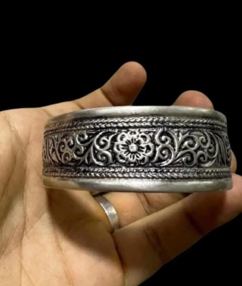 The bracelet’s bold tribal patterns and aged patina make it a striking piece for collectors, lovers of vintage Moroccan jewelry, or anyone seeking a timeless boho statement accessory. Its unique character and old-world charm ensure no two pieces are ever the same.