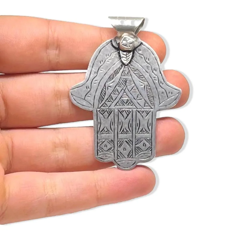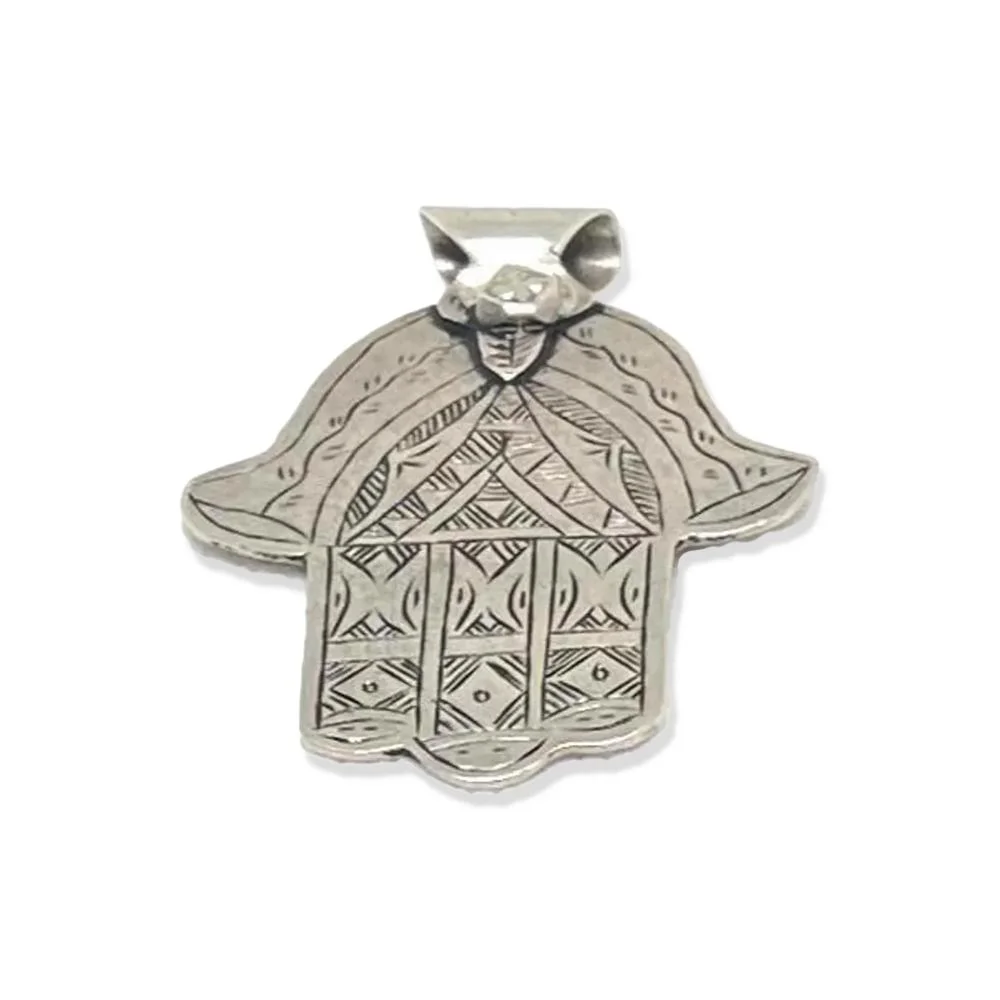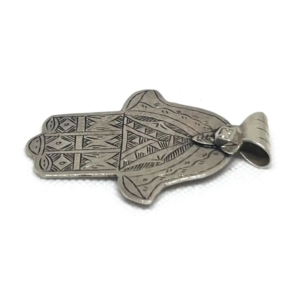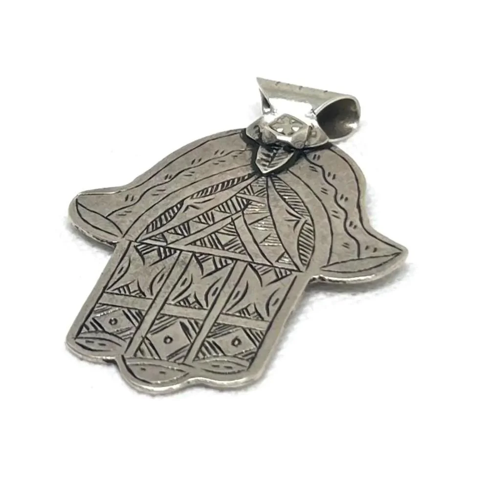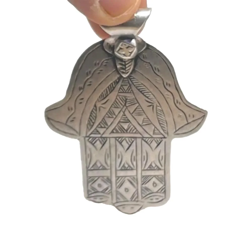Antique Moroccan Silver Hamsa Pendant Necklace – Judaica Hand of Fatima