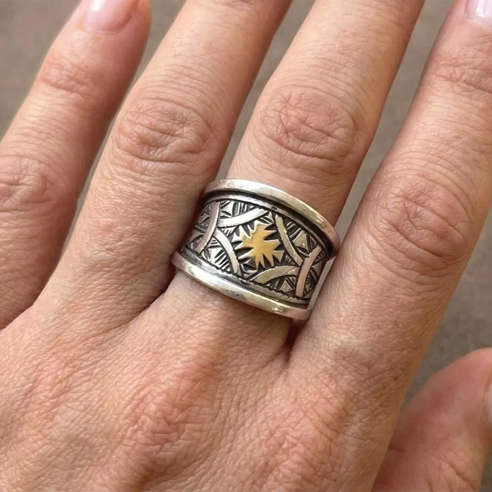 Handcrafted Touareg Amazigh Sterling Silver Ring with hand-engraved tribal design. Moroccan ethnic jewelry, perfect for boho, gypsy, or hippie-chic style.