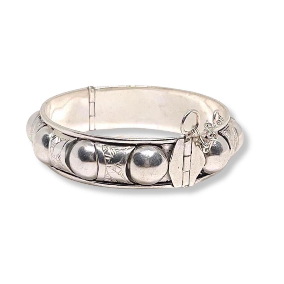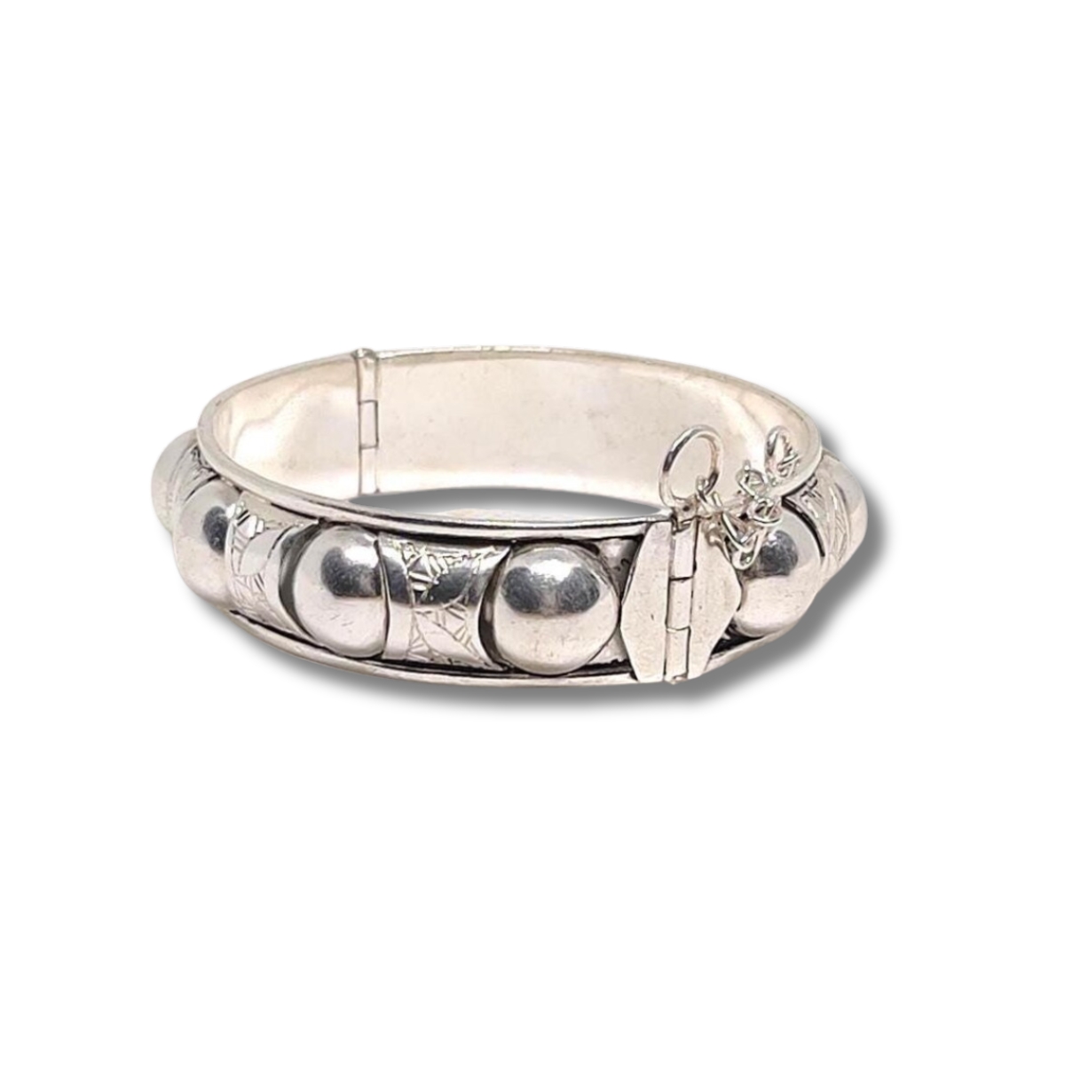 Design: Engraved motifs with silver ball accents