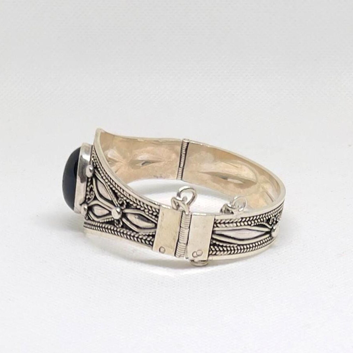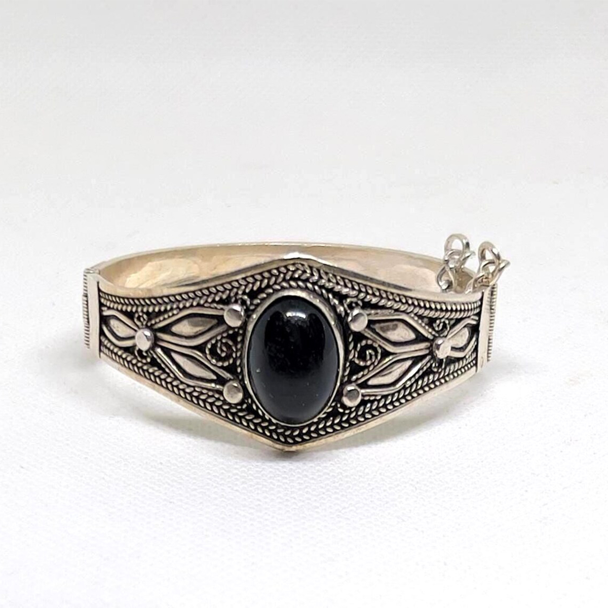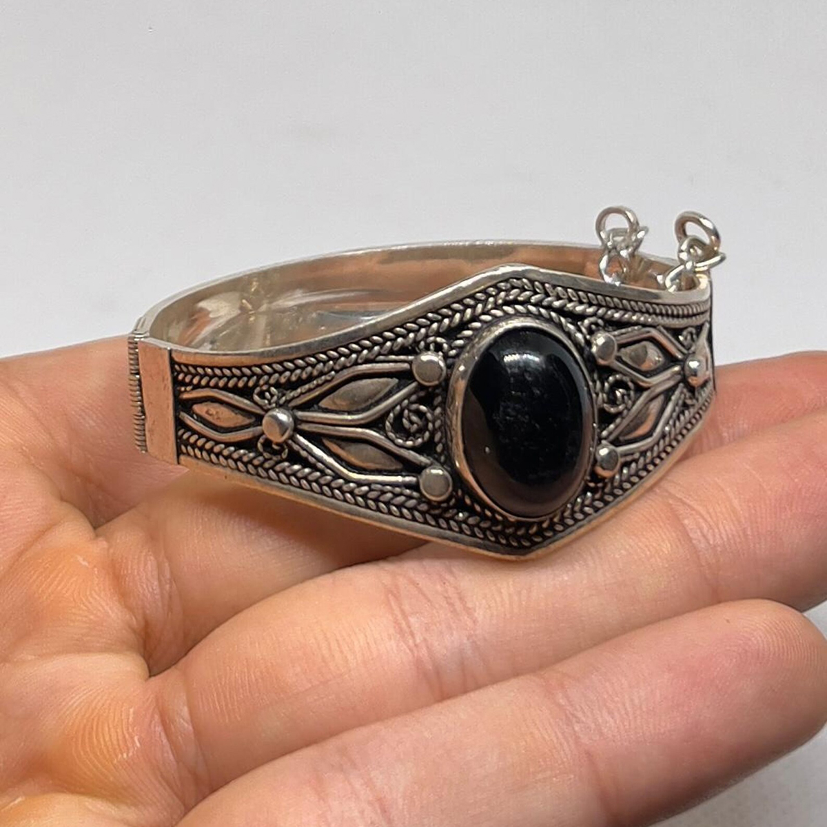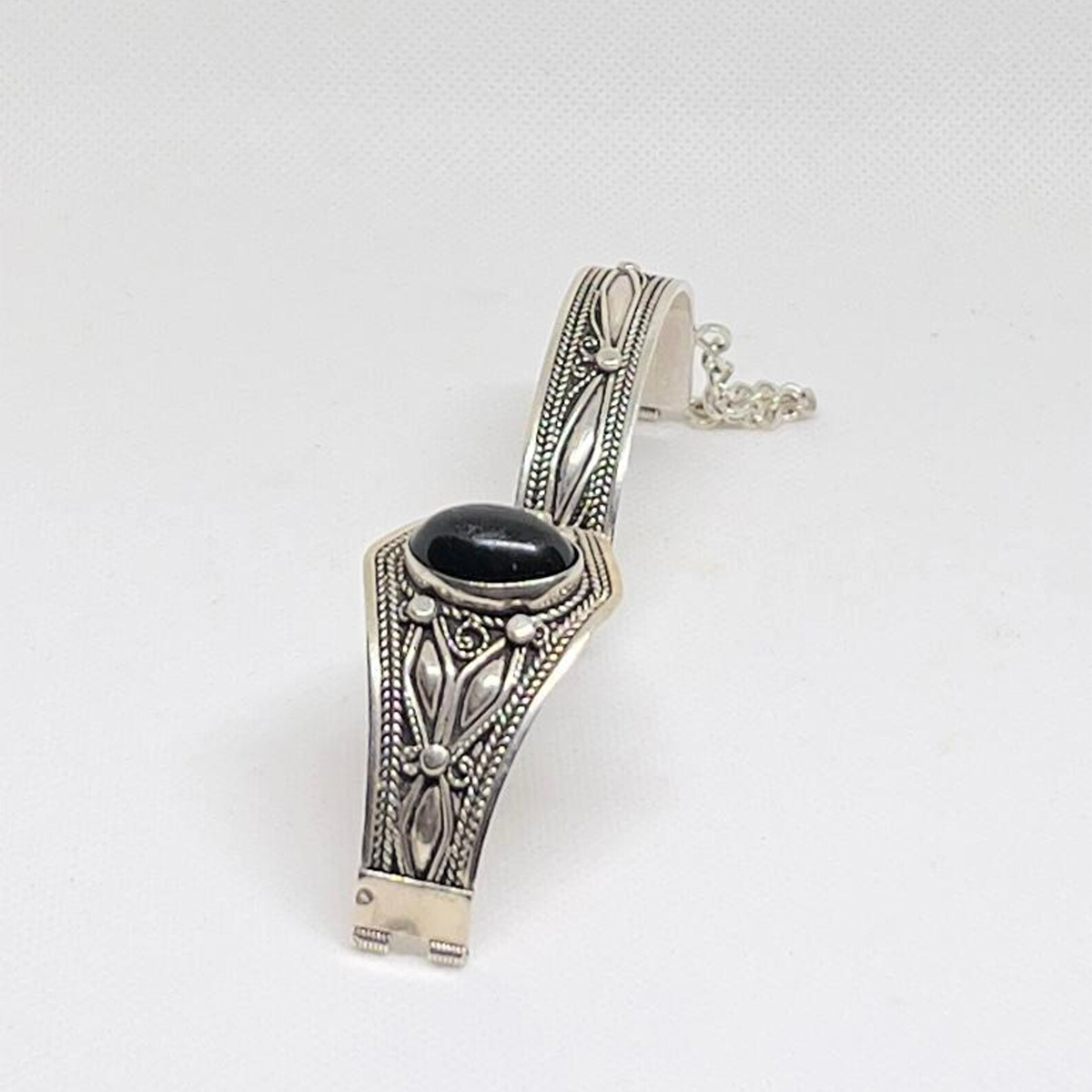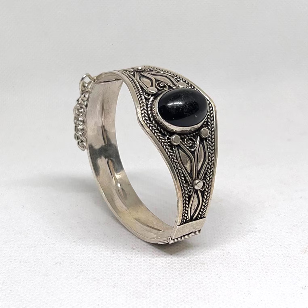 Vintage Berber Sterling Silver Cuff Bracelet – Agate Stone Tribal Amazigh Jewelry