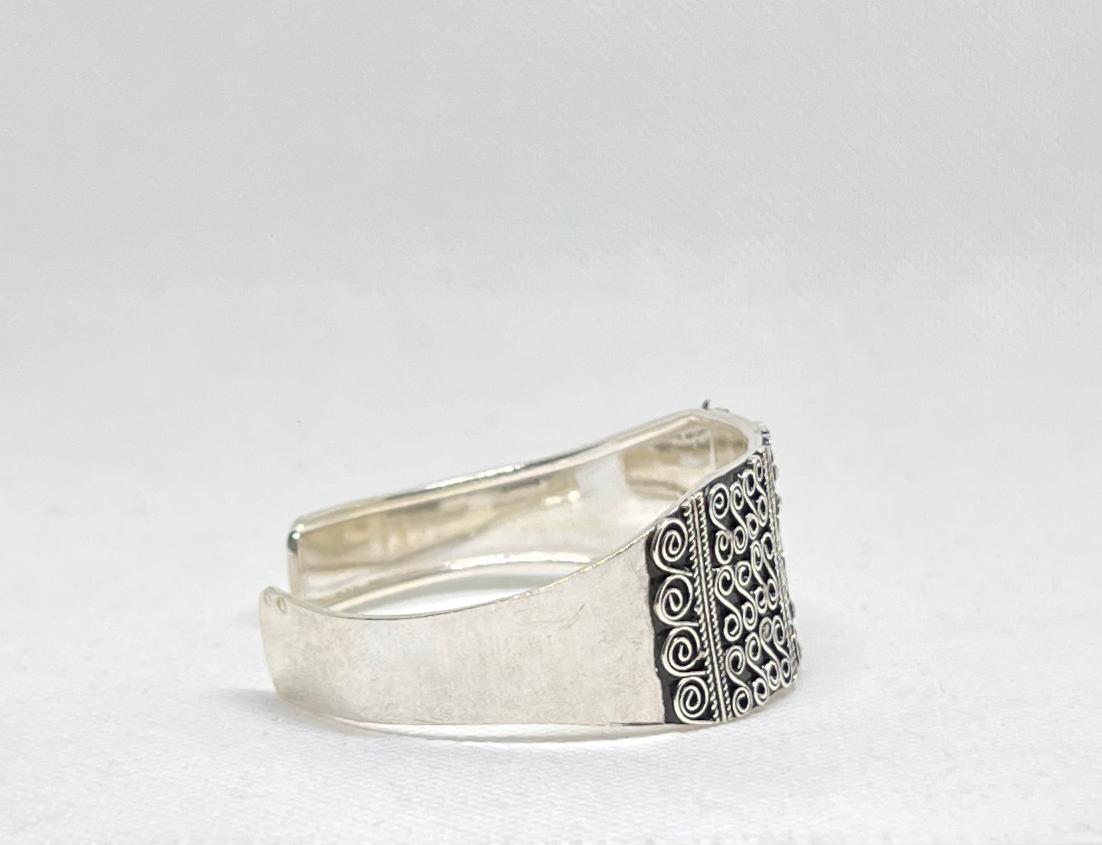 Made from solid sterling silver, the bracelet offers durability, comfort, and a refined tribal aesthetic. Its classic design makes it suitable for everyday wear while remaining bold enough to stand out as a statement piece. Designed as a unisex bracelet, it pairs effortlessly with both modern and traditional styles.