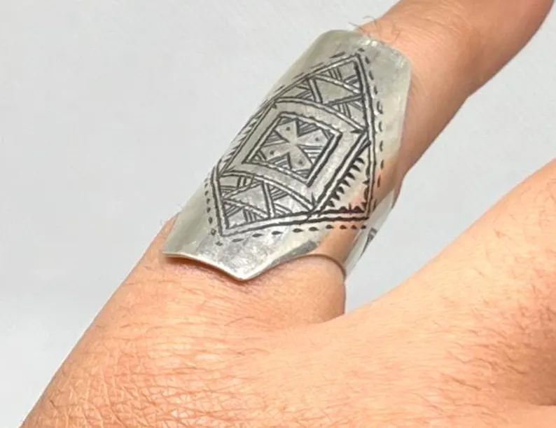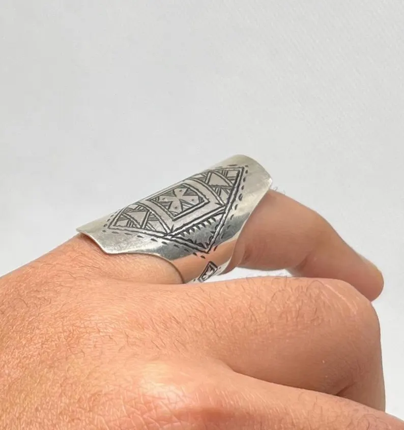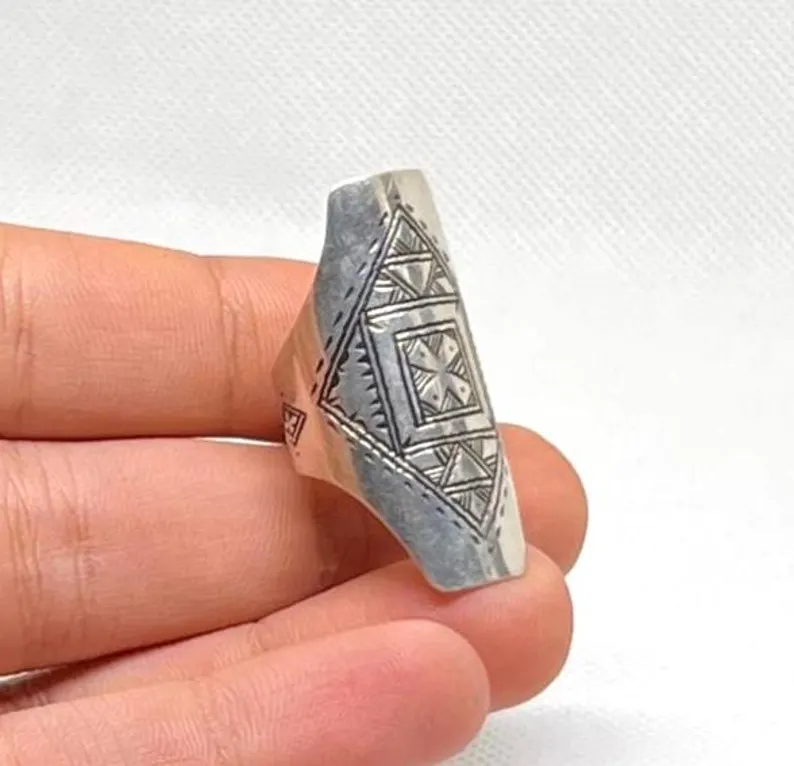 Berber silver rings represent centuries of North African tradition, symbolism, and skilled craftsmanship. This vintage engraved sterling silver Berber ring is an authentic handmade piece from southern Morocco, created by experienced Tuareg artisans using traditional techniques passed down through generations. Each engraved detail reflects the rich Amazigh and Berber cultural heritage, making this ring far more than just jewelry.