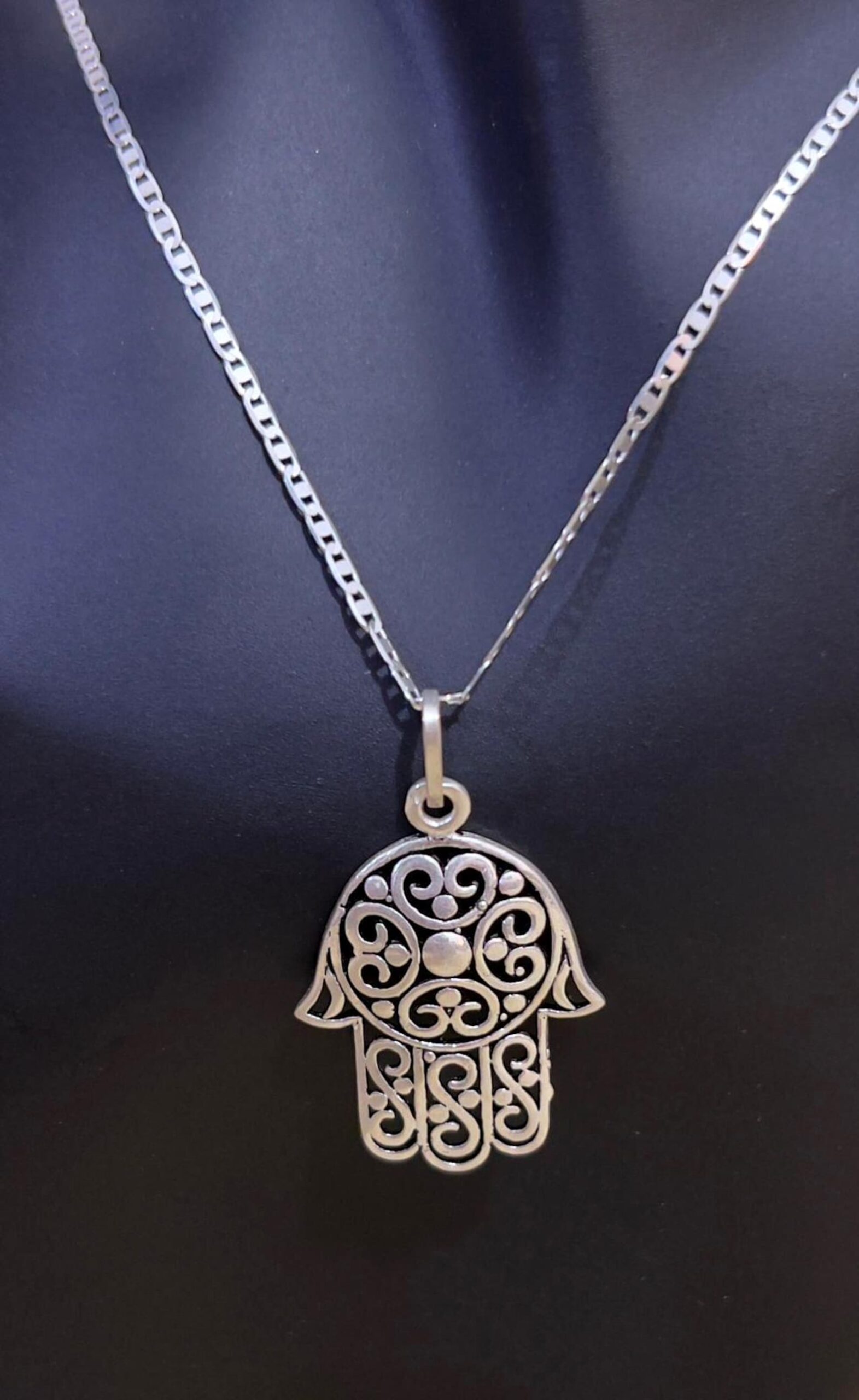 Handmade Moroccan Hamsa pendant crafted from 925 sterling silver. A unisex spiritual necklace symbolizing protection, faith, and cultural heritage.