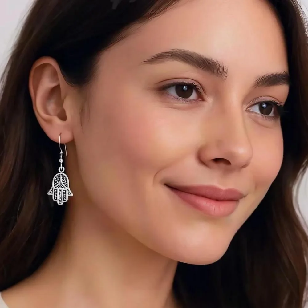 Rooted in Berber cultural heritage, each pair showcases detailed silverwork that reflects traditional craftsmanship and deep symbolic meaning. Lightweight and comfortable, these earrings are designed for everyday wear while carrying powerful spiritual significance. Their timeless boho and tribal aesthetic makes them easy to wear solo or layered with other protection jewelry.