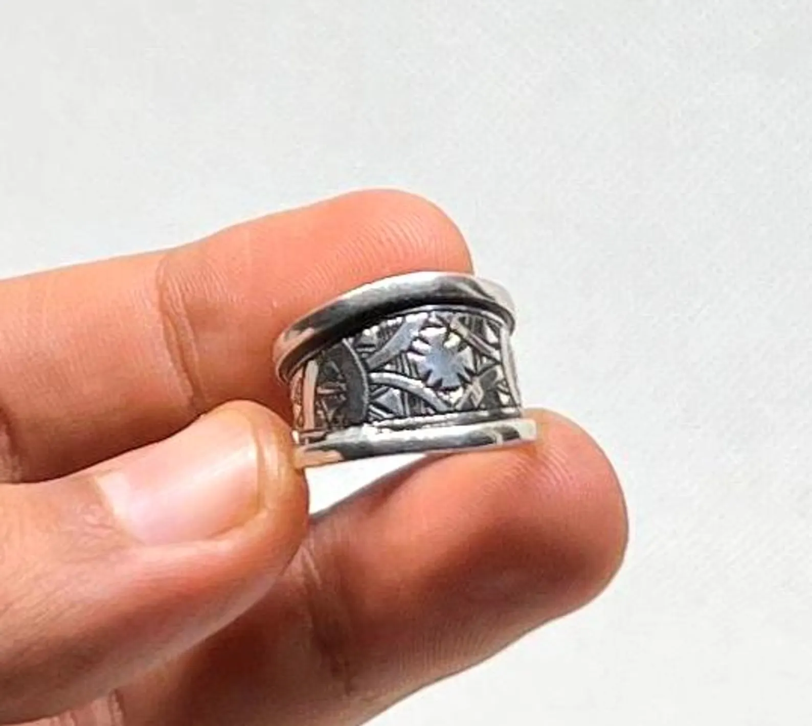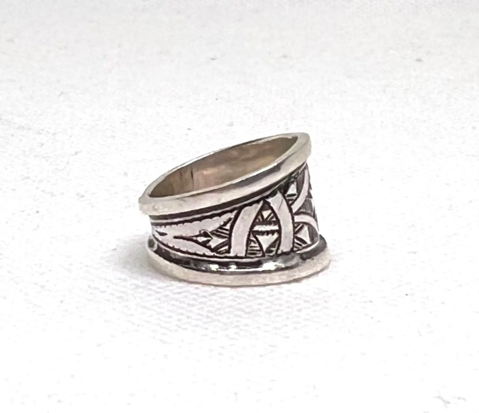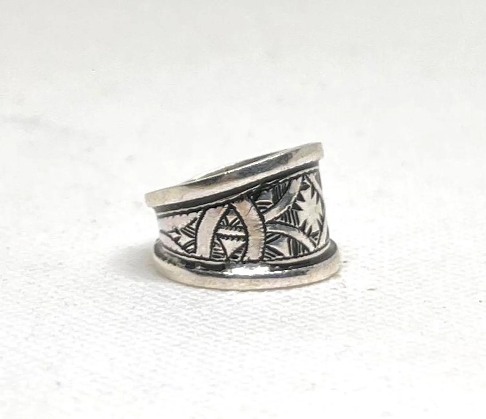Handmade Tuareg silver ring with traditional tribal decoration