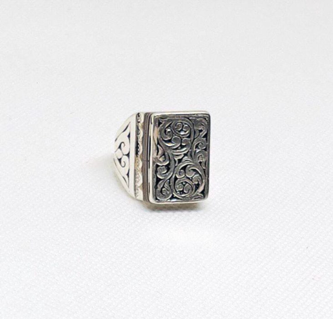 Vintage Tuareg Ebony Berber Sterling Silver Ring / Handmade Moroccan Engraved Amazigh Jewelry