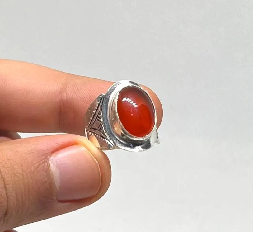 Moroccan Handmade Silver Carnelian Ring: Tuareg Berber Engraved Tribal Jewelry (Size 8 US / 57 EU)