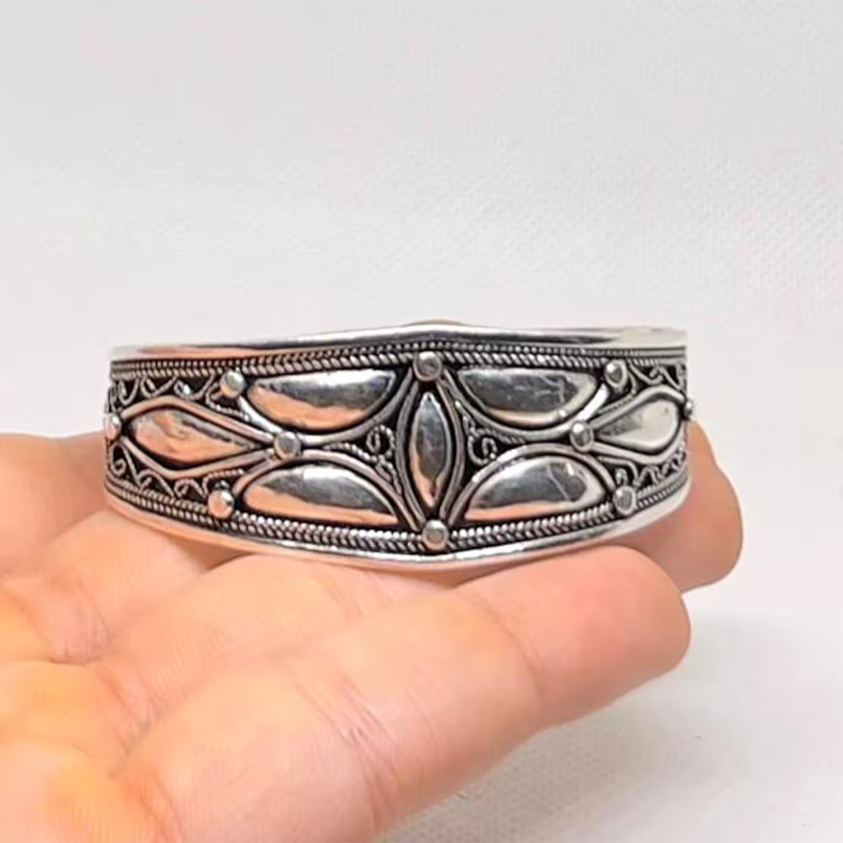 Handmade Moroccan Sterling Silver Cuff Bracelet – Berber Tribal Jewelry