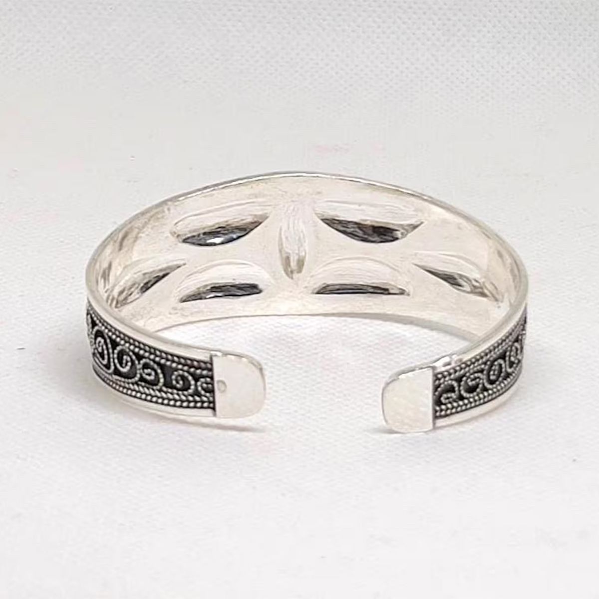 Made from genuine 925 sterling silver, this cuff offers a polished artisan finish that is both durable and elegant. Its adjustable open cuff design ensures a comfortable fit for most wrist sizes, making it perfect for everyday wear or special occasions.