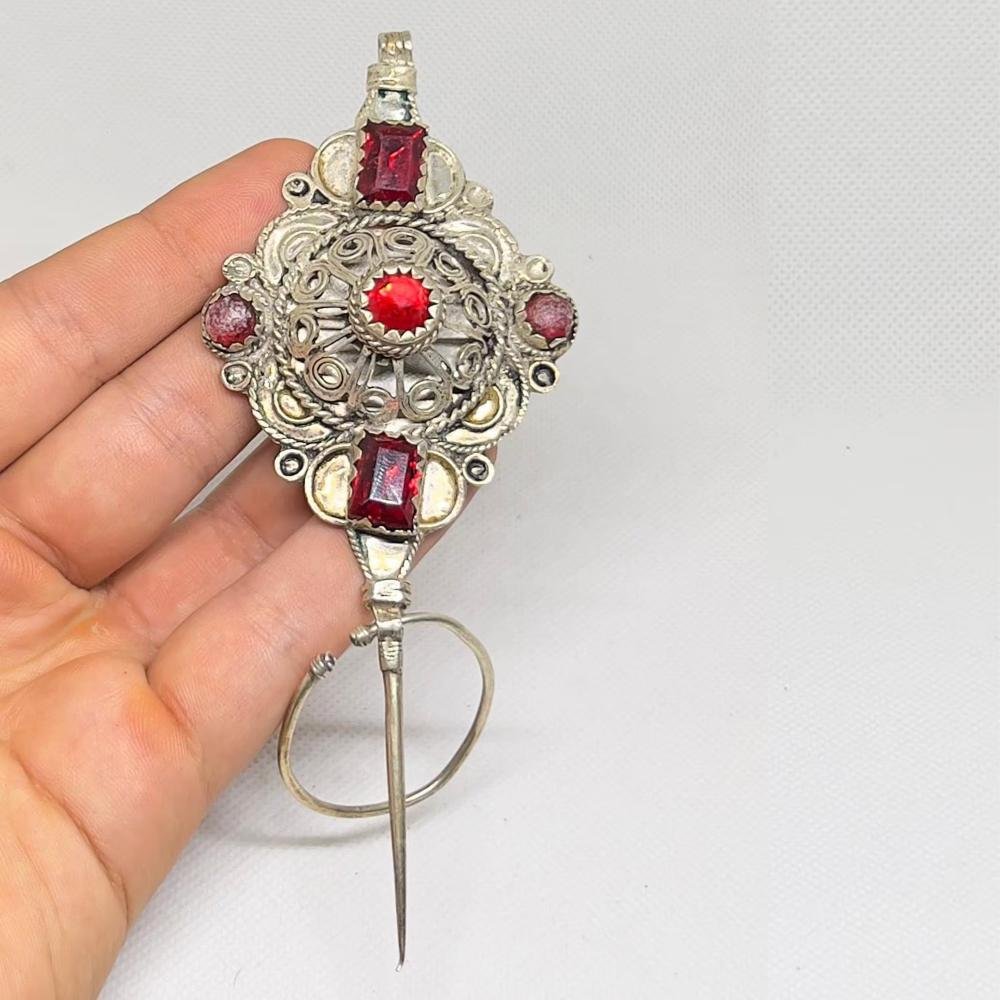 Highly valued by collectors and lovers of ethnic jewelry, this Moroccan Silver Fibula represents identity, protection, and heritage. Whether worn as a bold boho statement, used in ceremonial dress, displayed as décor, or preserved as part of a vintage collection, it carries the story of generations of Berber tradition and artistry.