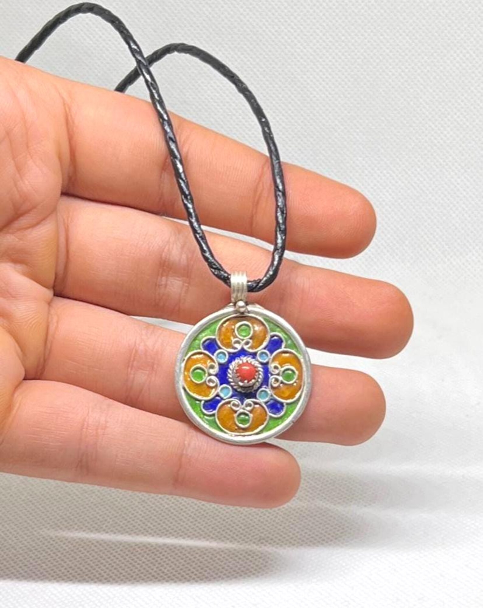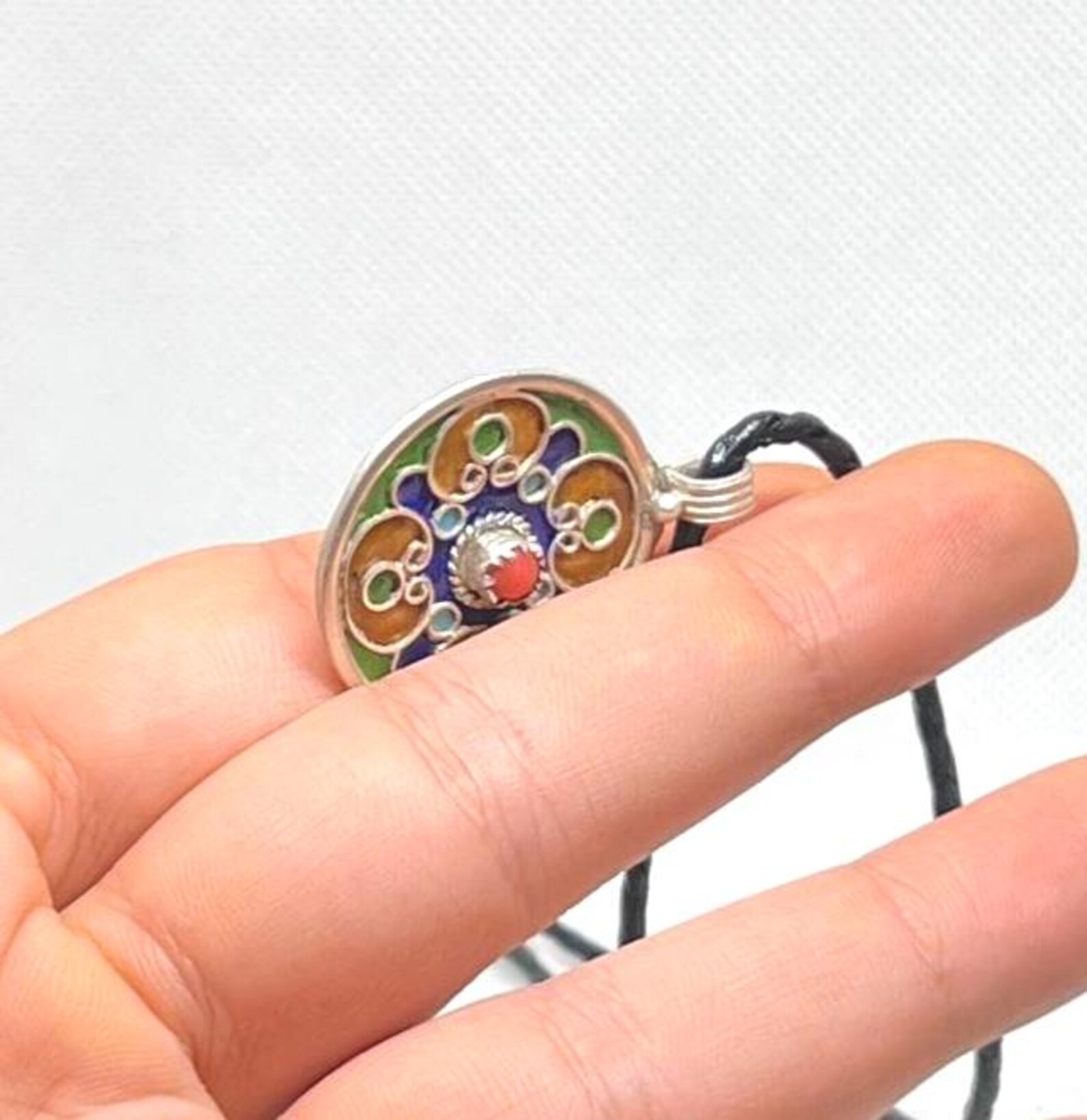 Handmade by skilled Moroccan artisans, this pendant blends ancient symbolism with refined craftsmanship. The colorful enamel enhances the powerful symbol, making this necklace a meaningful cultural statement and a timeless charm necklace suitable for everyday wear or symbolic gifting.