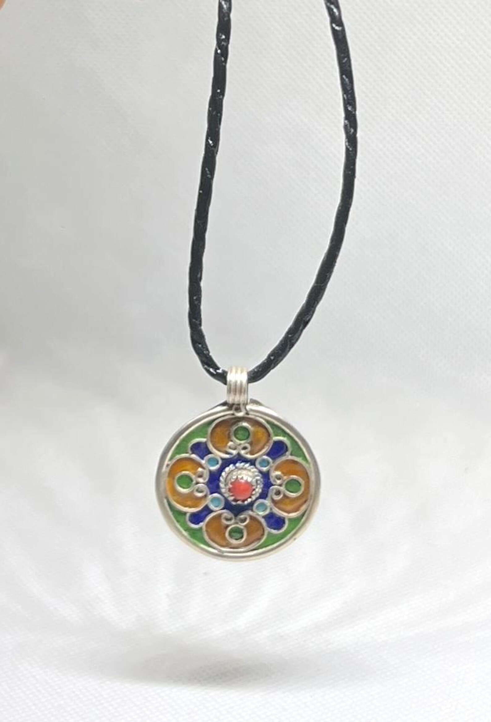 Moroccan Sterling Necklace – Amazigh Yaz Symbol Enamel Silver Pendant
