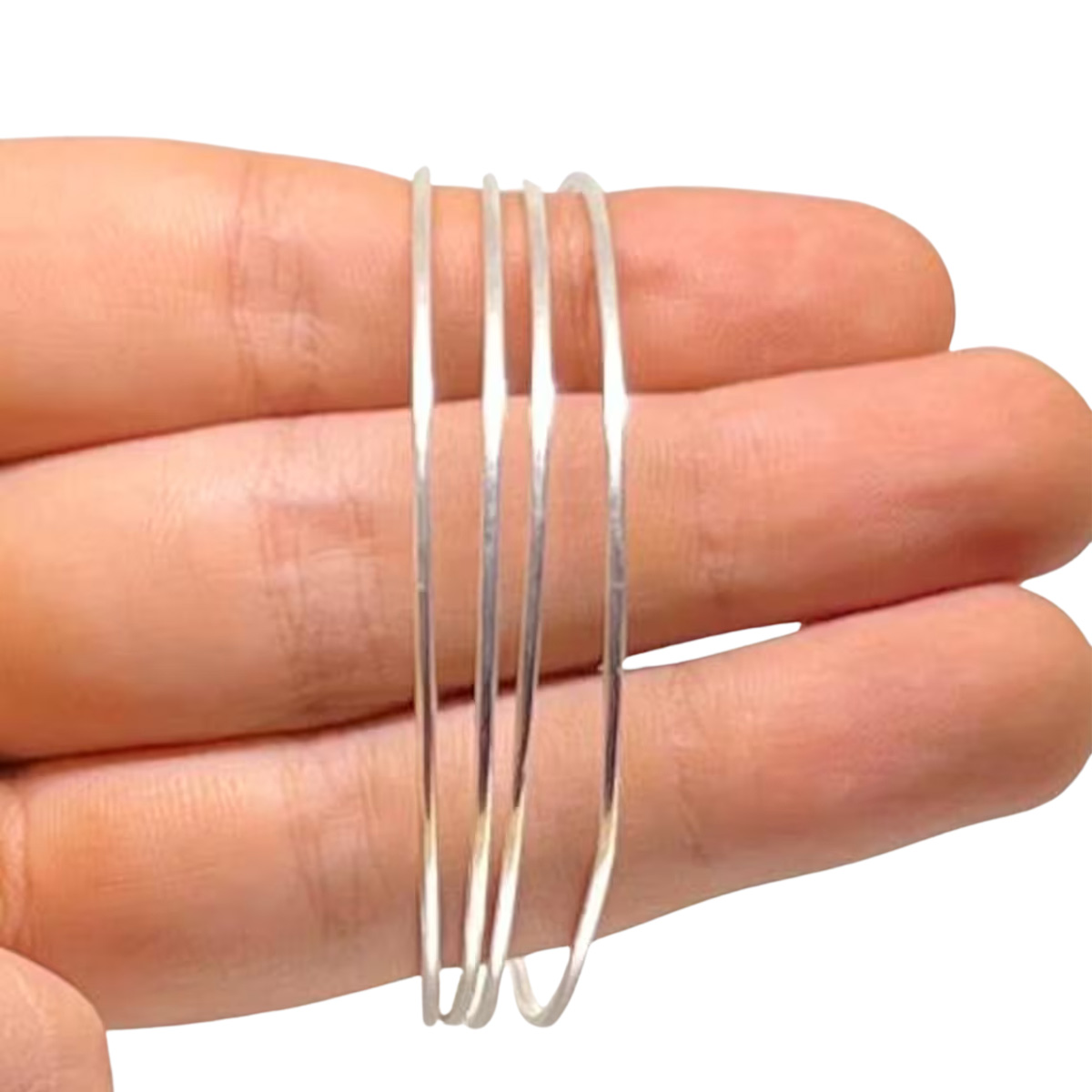 Moroccan Sterling Silver Bangle Set – Berber Tribal Stackable Cuff Bracelets
