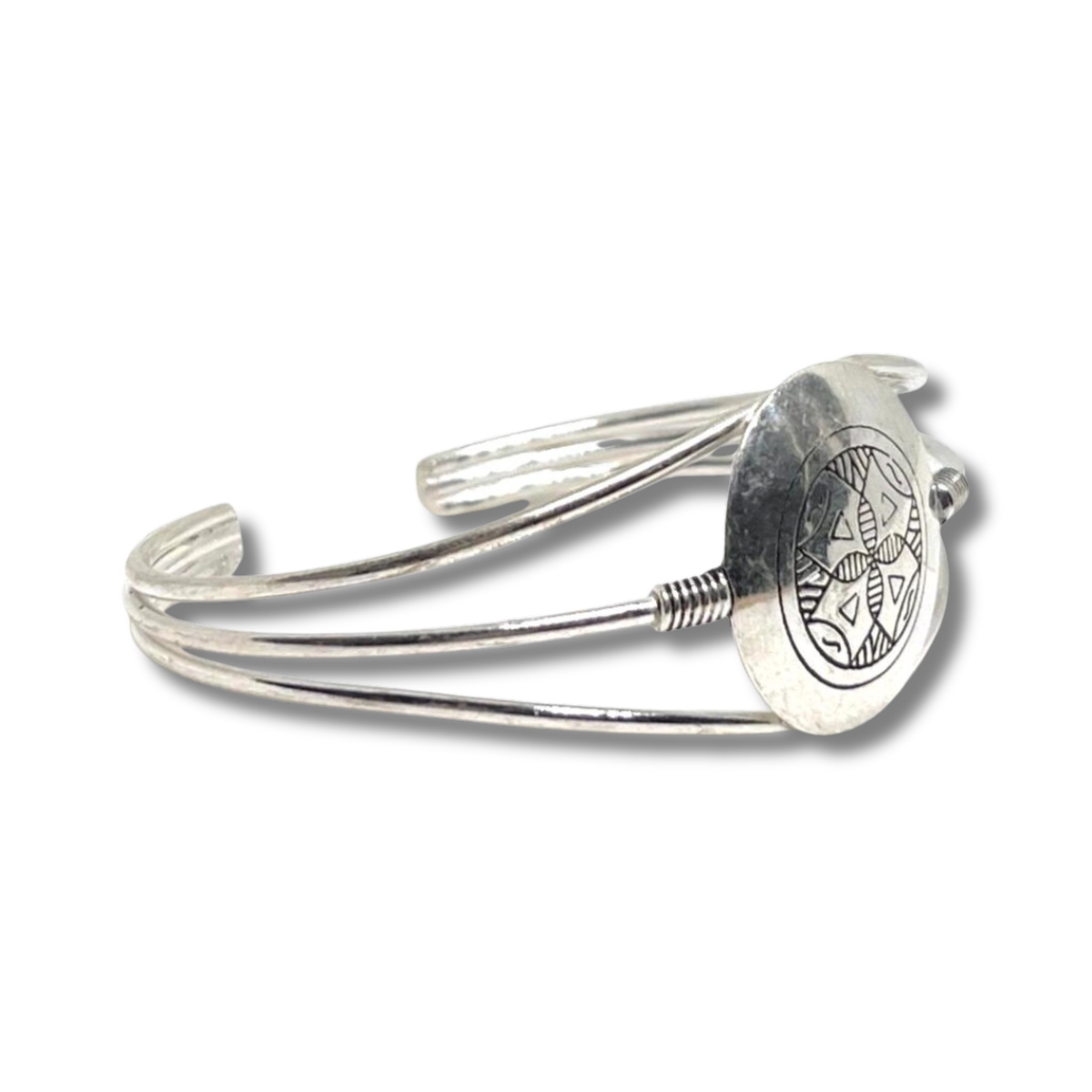 Design: Engraved tribal motifs with spiral symbol