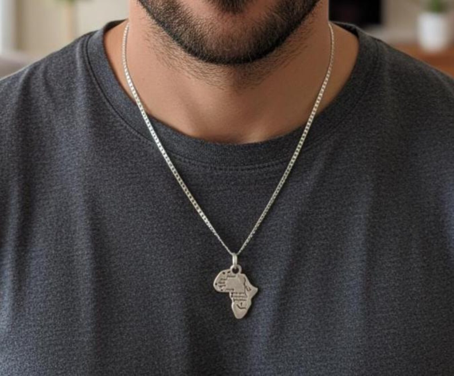 Designed as a unisex pendant with a strong masculine presence, this necklace pairs well with a silver box chain, leather cord, or bead strand. Whether worn as a personal statement or gifted as a meaningful keepsake, this silver necklaces for men option stands as a tribute to African roots, travel memories, and cultural pride.