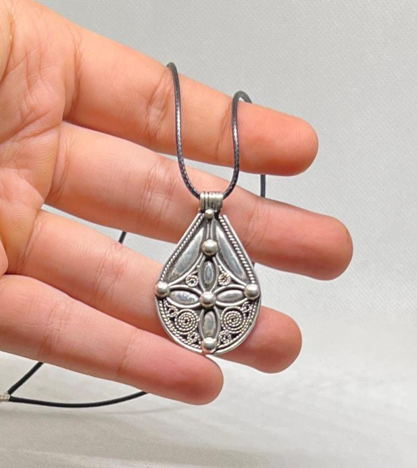 The bold size and solid weight give this necklace a strong presence, while its bohemian and ethnic design makes it versatile for modern styling. Whether worn with a chain, leather cord, or bead strand, this Sterling Silver Necklace stands as more than an accessory—it is a symbol of identity, spirituality, and artisan craftsmanship.