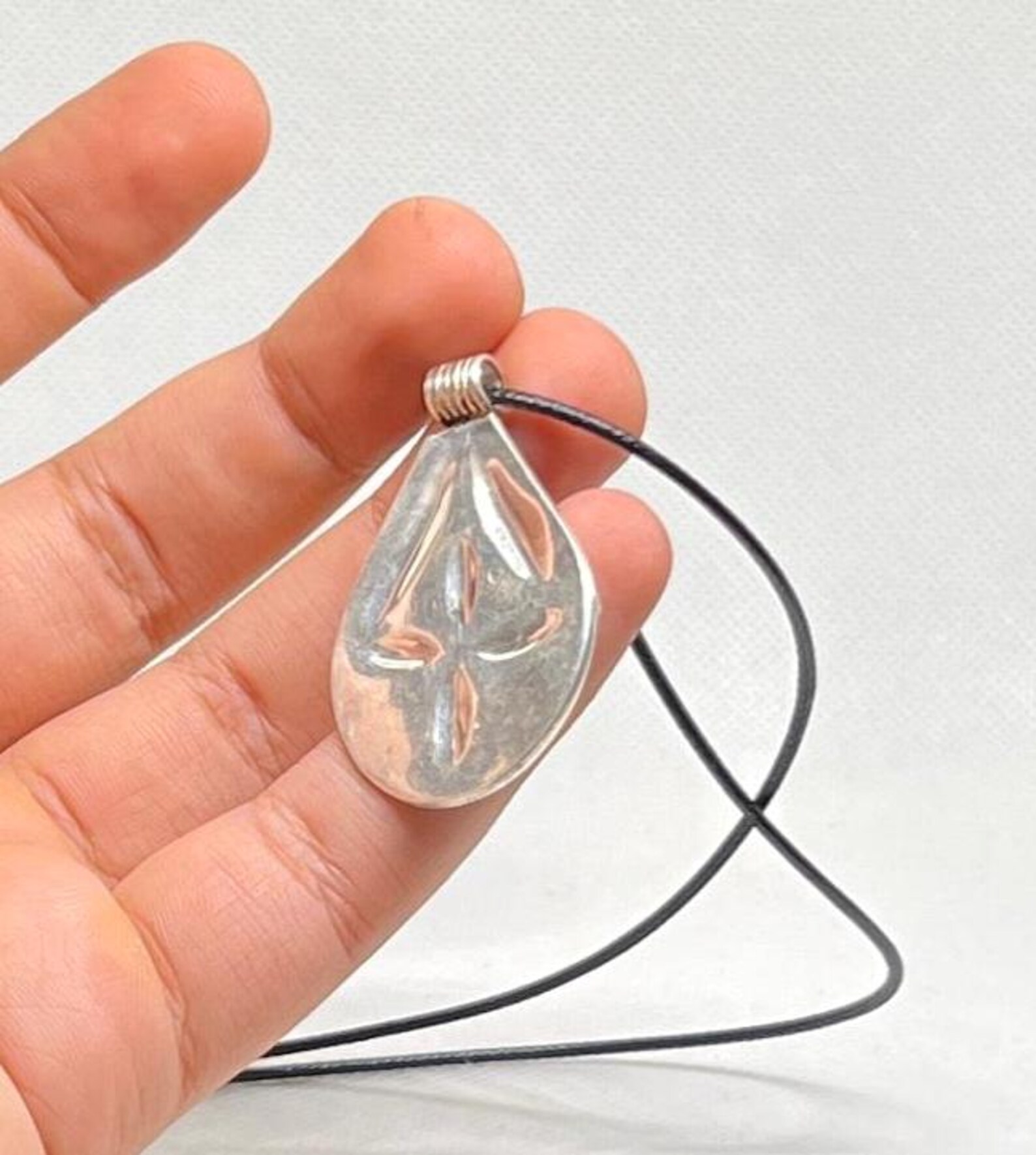 Can be worn with silver chain, leather cord
