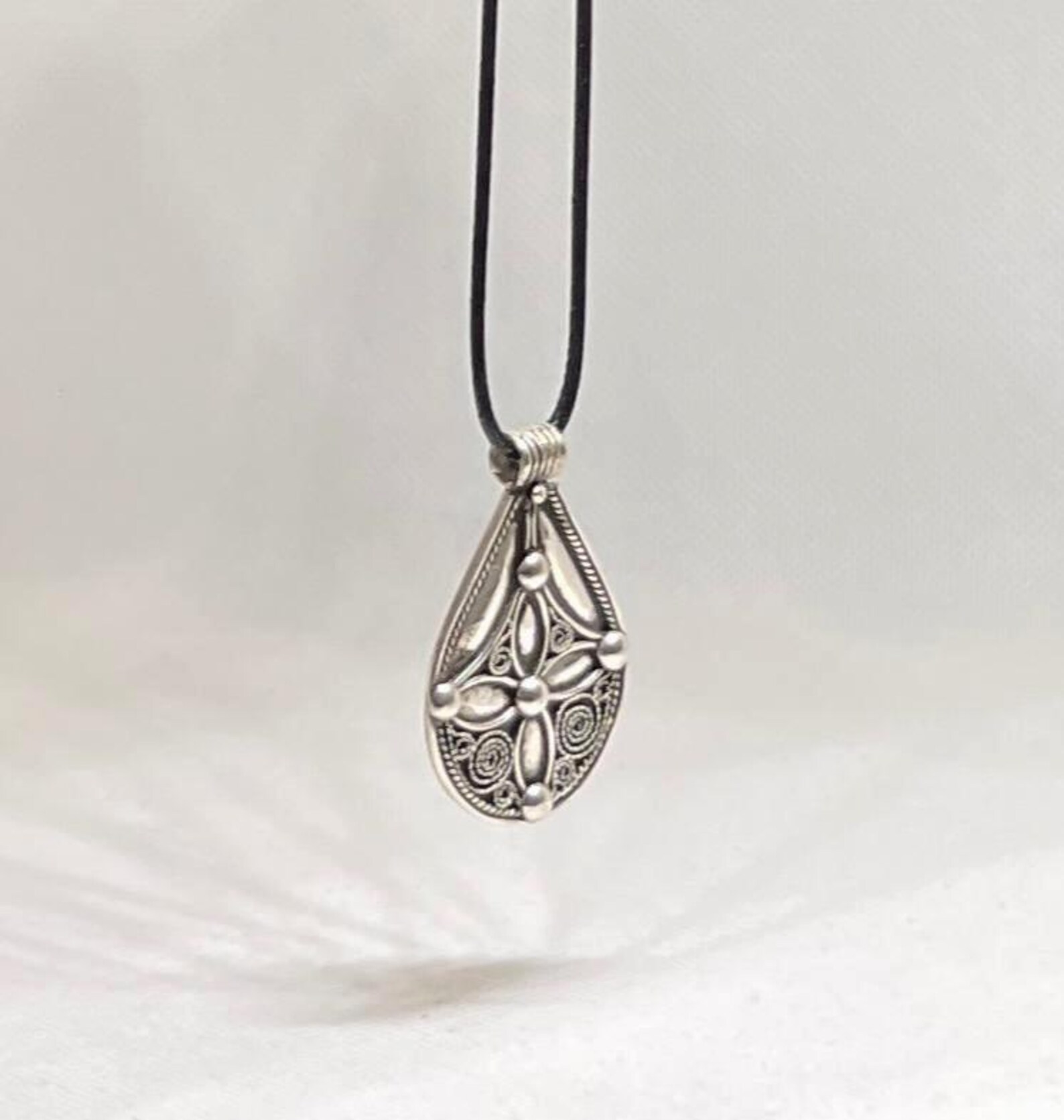 Sterling Silver Necklace – Berber Amulet Tuareg Cross Pendant Moroccan Tribal Jewelry
