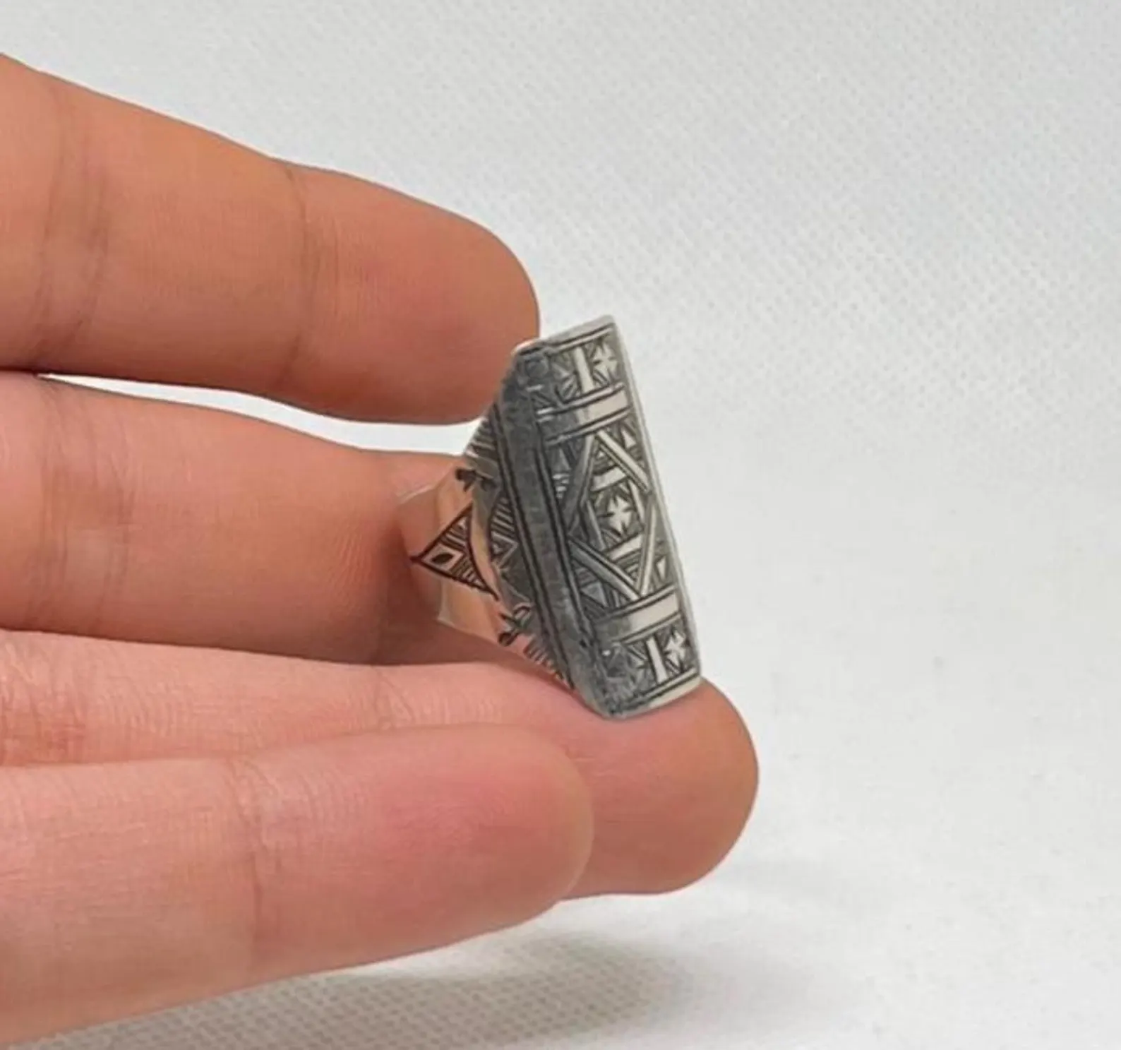 This handcrafted Silver Rings is an authentic piece of Moroccan Berber jewelry made by skilled Tuareg artisans of North Africa. Crafted from solid 925 sterling silver, this rings features intricate Amazigh tribal engravings inspired by ancient desert traditions. With its vintage boho and gypsy aesthetic, this Tuareg silver ring is both meaningful and stylish. Traditionally, Tuareg jewelry symbolizes identity, protection, and freedom, making this metarials ring more than just an accessory—it is a connection to cultural heritage. Perfect for everyday wear or as a bold statement piece, it suits both men and women.