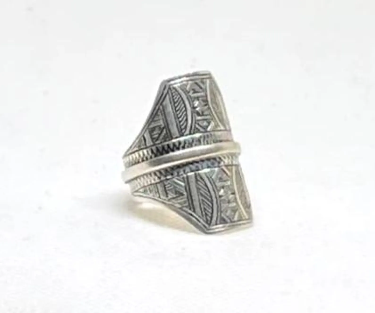 Handmade Sterling Silver Ring from Morocco. Vintage Berber Tuareg engraved design. Size 8 US / 57 FR, weight 6.87g. Perfect ethnic boho jewelry gift.