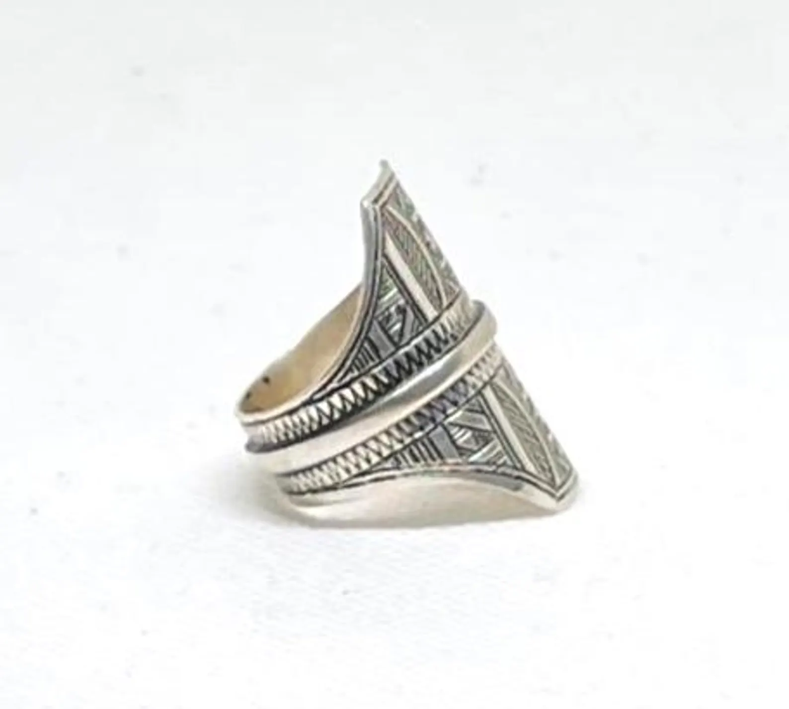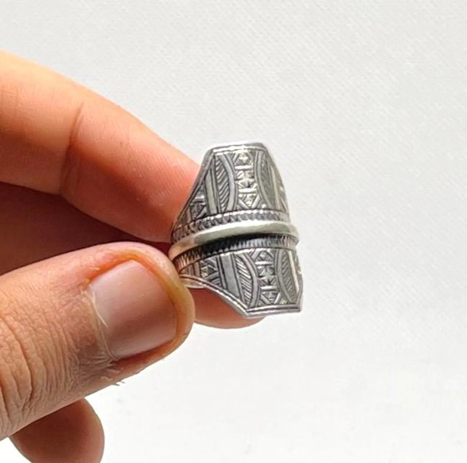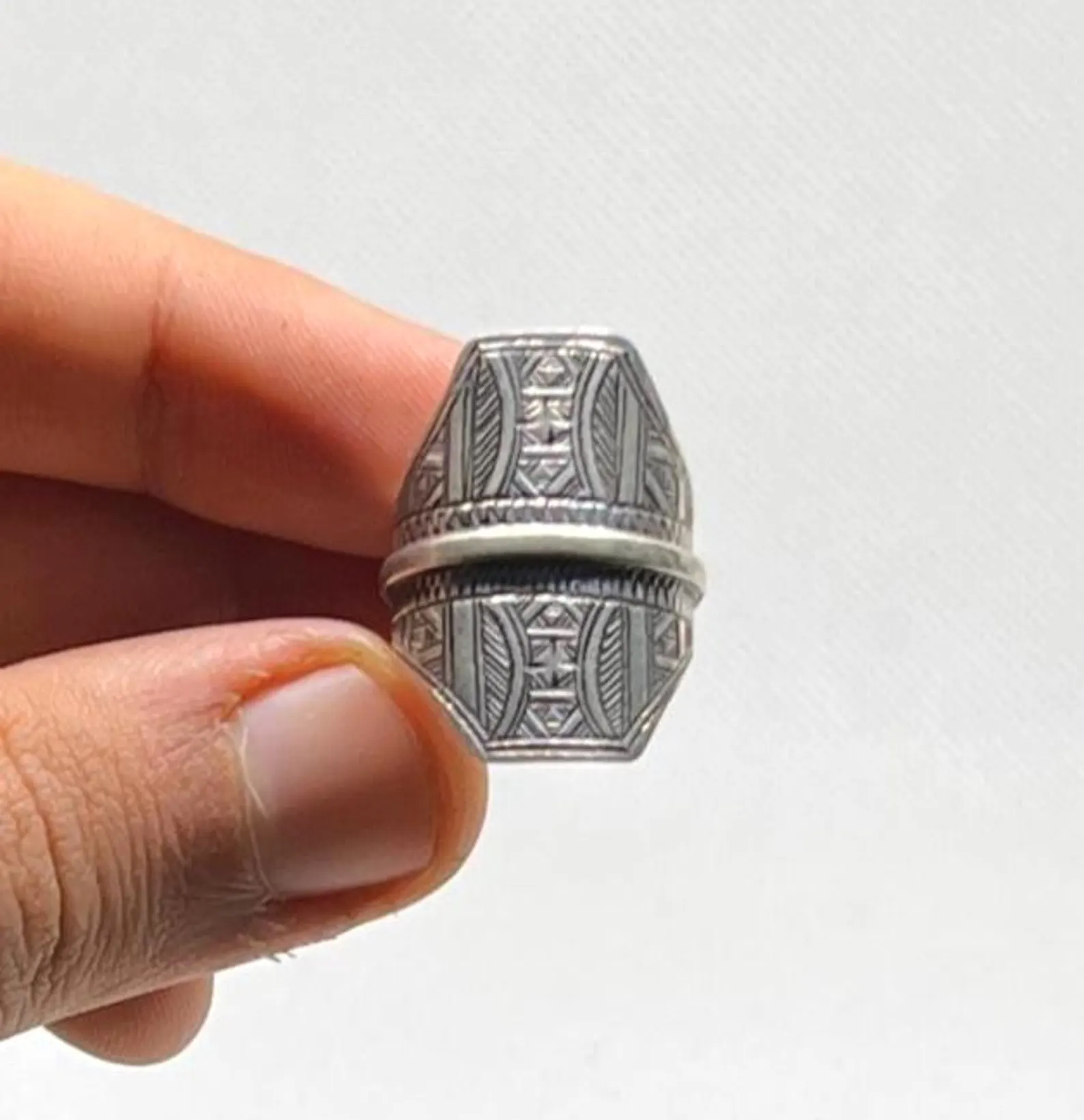 Discover the timeless beauty of this Sterling Silver Ring, handcrafted by Berber Tuareg artisans in southern Morocco. This vintage engraved ring blends traditional Kabyle and Tuareg designs to create a unique ethnic piece with a boho and tribal flair. Made from high-quality amazigh silver, this Moroccan handmade ring is perfect for those who love authentic African jewelry and vintage accessories. Its intricate design makes it a standout statement piece for both men and women, especially for fans of gothic and biker fashion.
