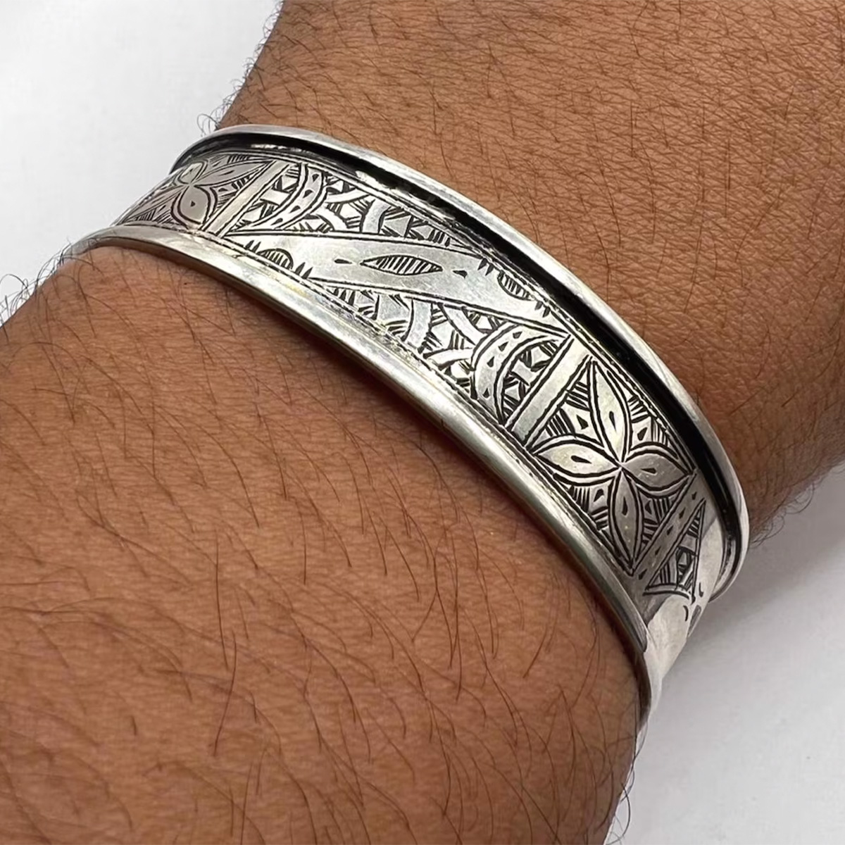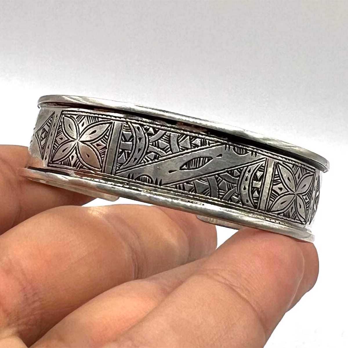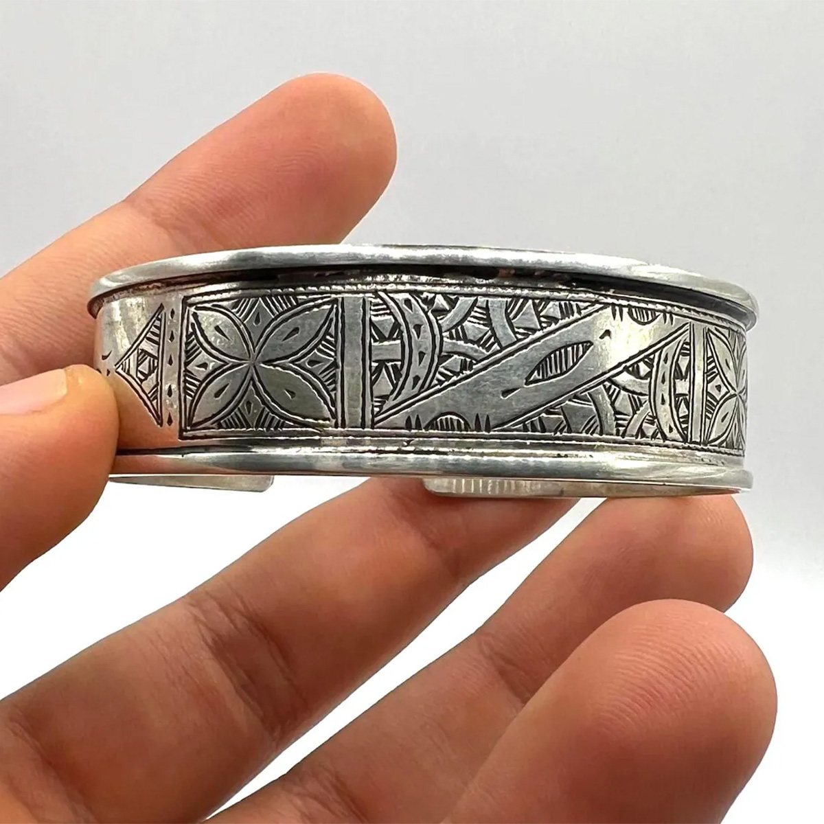 Sterling Silver Tuareg Cuff Bracelet – Hand-Engraved Berber Tribal Boho Jewelry