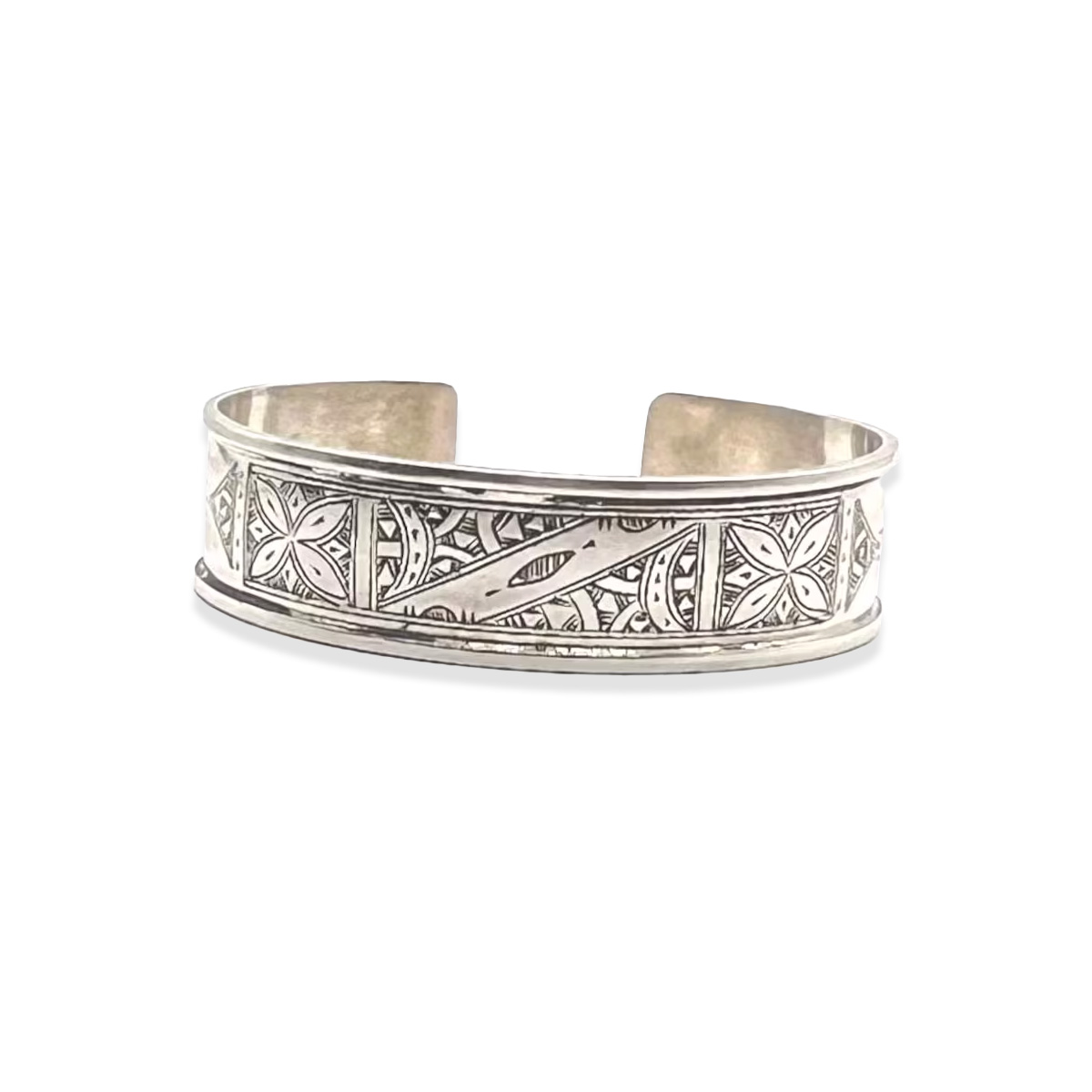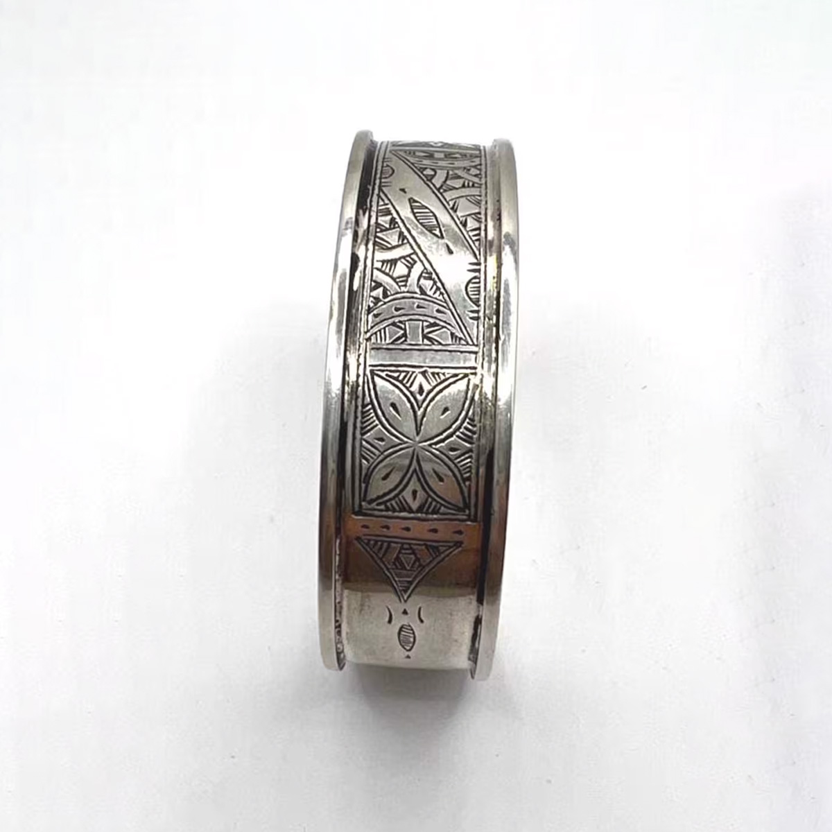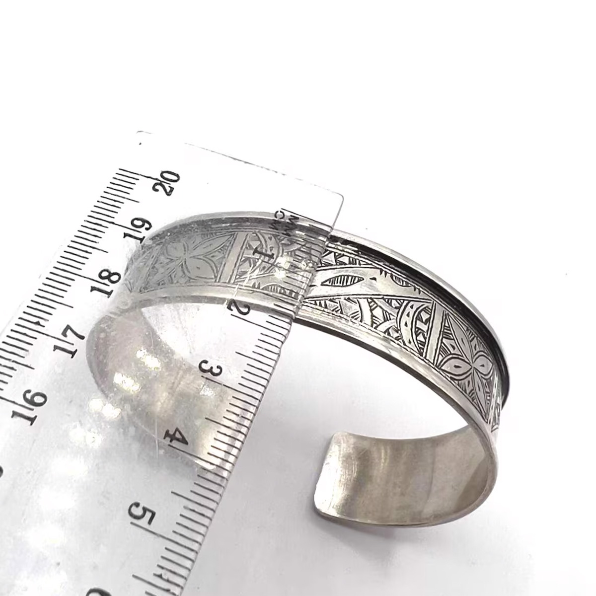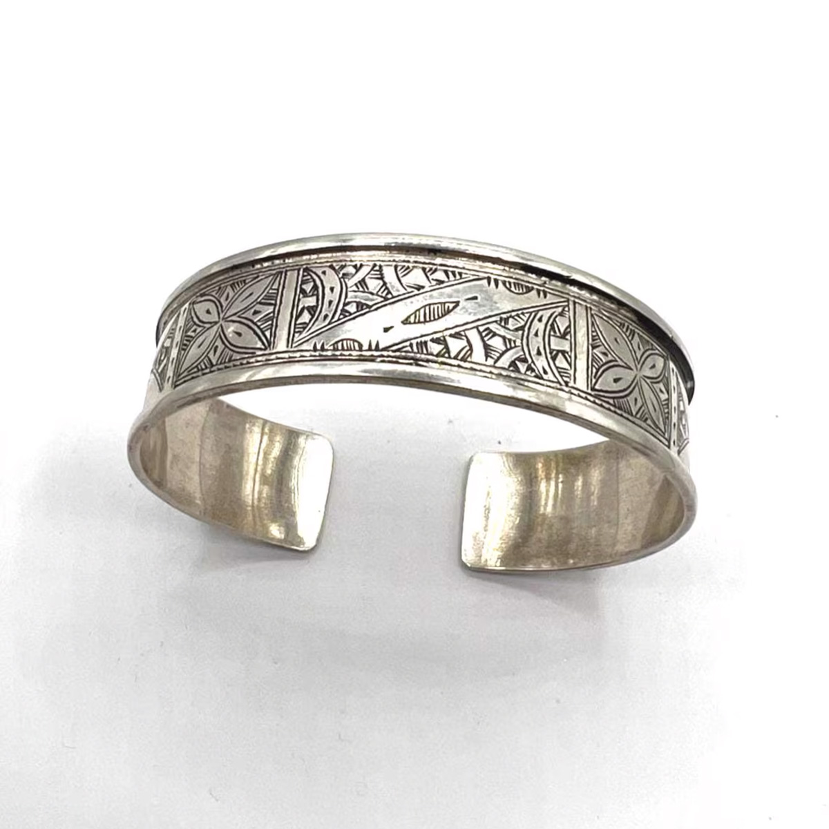 Sterling Silver Tuareg Cuff Bracelet – Hand-Engraved Berber Tribal Boho Jewelry