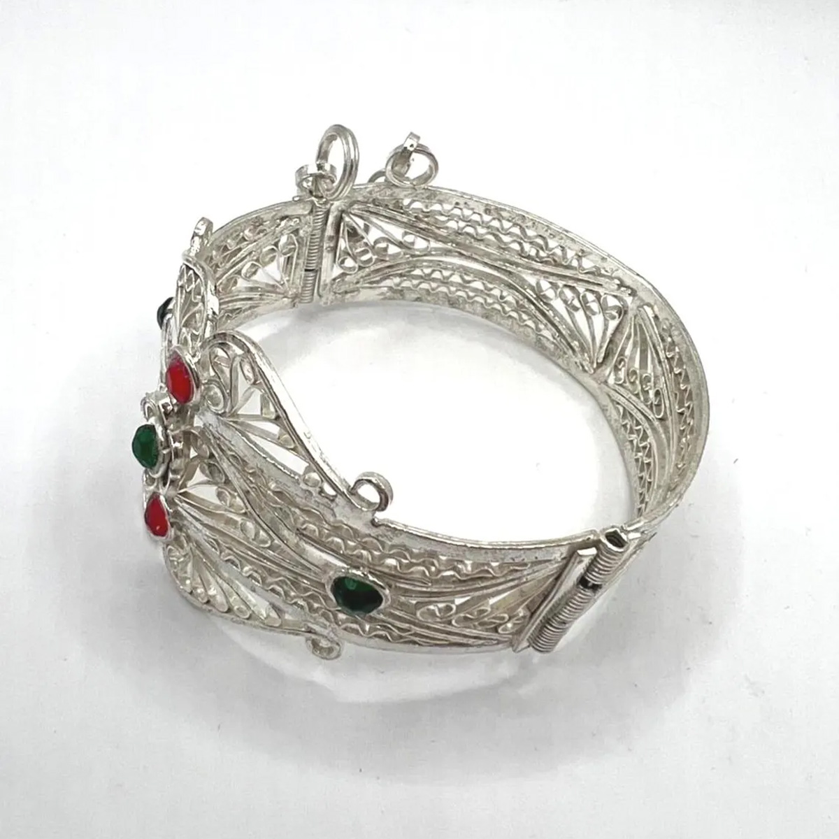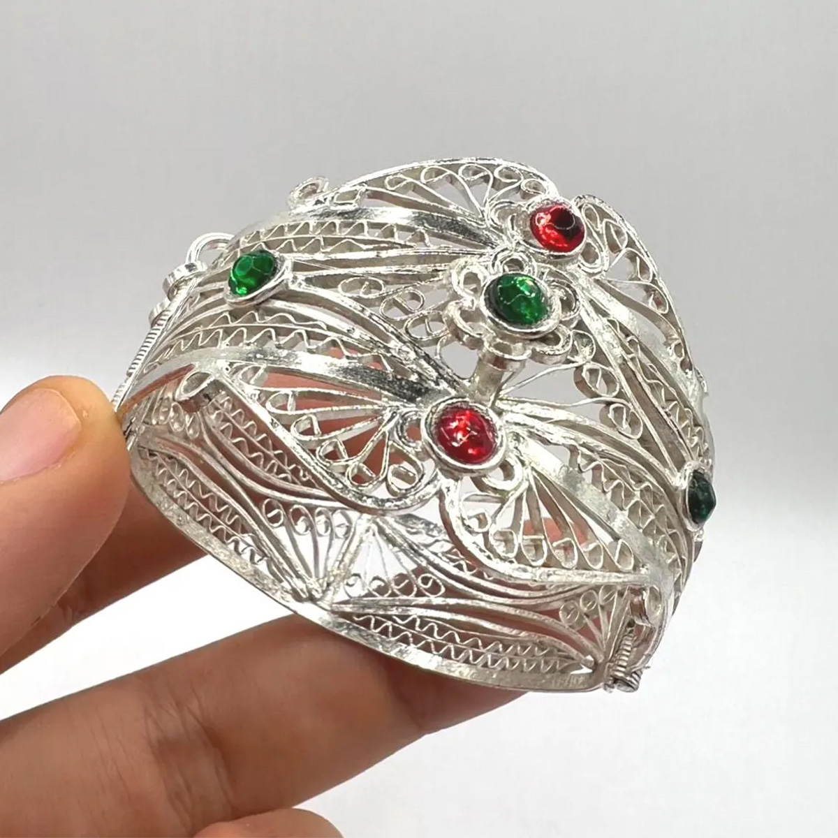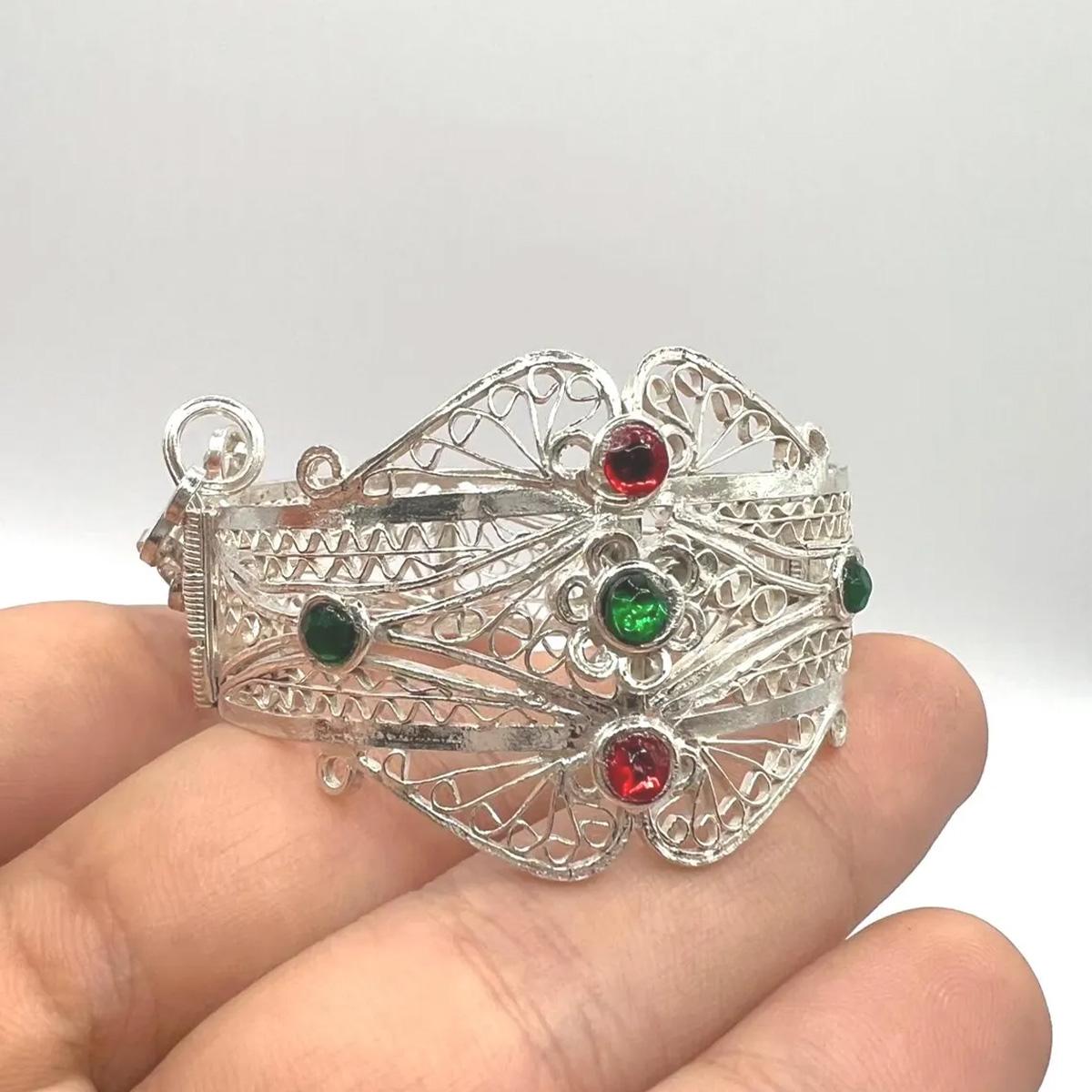 Vintage Berber Filigree Cuff Bracelet – Kabyle Silver Plated Moroccan Jewelry